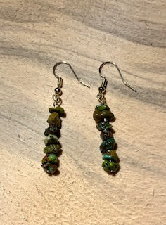 Experience the essence of African beauty with our African Turquoise Tiny Chips Earrings, a celebration of natural elegance and unique craftsmanship. Each earring is adorned with tiny chips of African turquoise, meticulously arranged to create a captivating mosaic of color and texture. The varied shades of turquoise evoke the vast landscapes and vibrant cultures of Africa, while the intricate design adds a touch of artisanal charm. Whether worn for everyday sophistication or as a statement piece for special occasions, these earrings are sure to become a cherished addition to your jewelry collection. Embrace the spirit of adventure and adorn yourself with the timeless beauty of African Turquoise Tiny Chips Earrings.