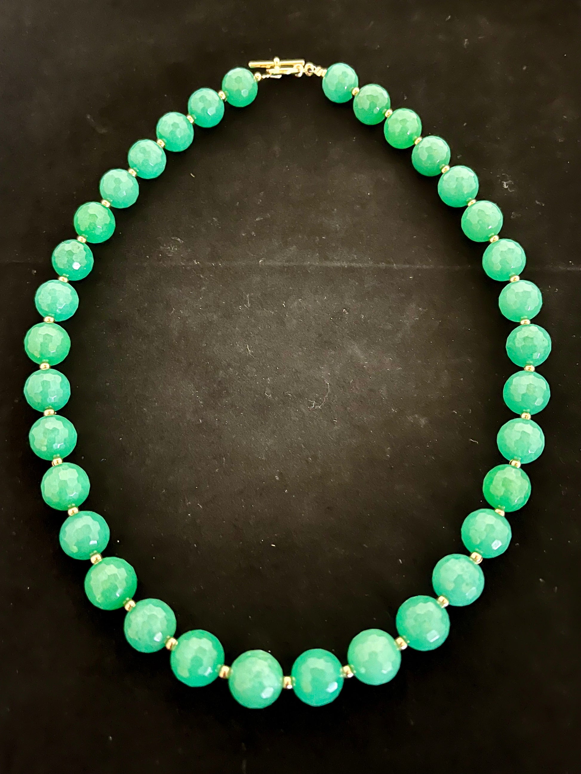 A faceted jade necklace is a striking and graceful piece of jewelry that effortlessly captures the allure of jade in a refined design. Crafted by a skilled jeweler, this necklace showcases the unique beauty of faceted jade stones, creating a visually captivating and sophisticated accessory.