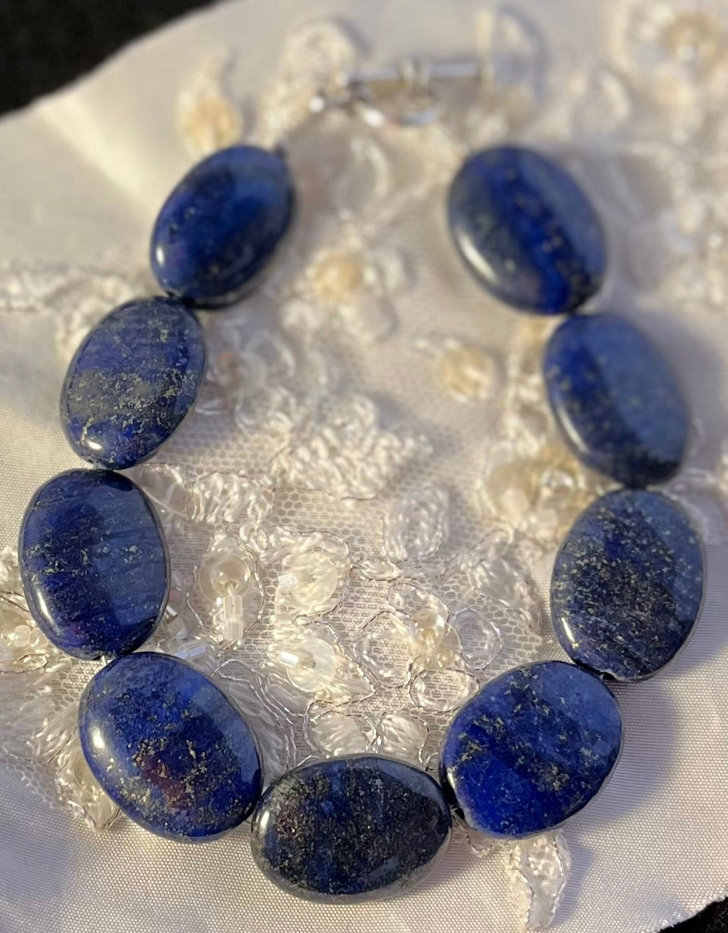 Wearing this Lapis Ovals Bracelet is more than just adorning oneself with beautiful jewelry; it's a statement of timeless elegance and a nod to the wearer's appreciation for the finer things in life. Whether paired with evening attire for a glamorous event or used to add a touch of sophistication to everyday wear, this bracelet is a versatile and cherished addition to any jewelry collection.