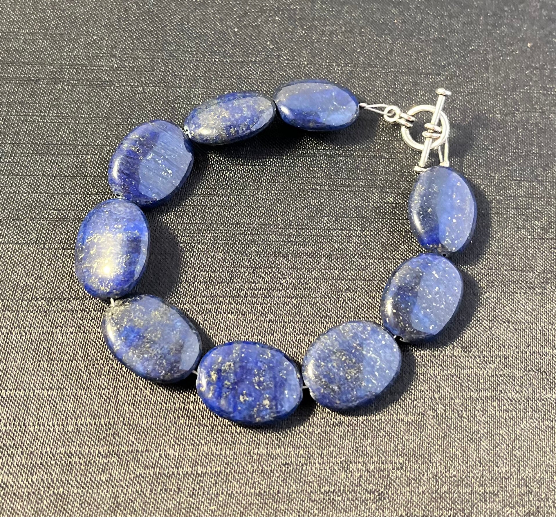 Indulge in the allure of lapis lazuli and the timeless appeal of silver with this exquisite bracelet, a fusion of luxury and natural beauty that transcends trends and stands as a testament to refined taste.