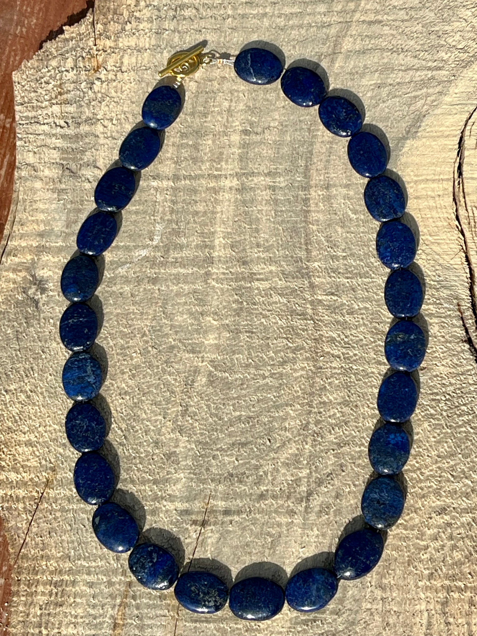 Wearing this Lapis Ovals Necklace is a statement of timeless elegance and a nod to the wearer's appreciation for the finer things in life. Whether paired with evening attire for a glamorous event or used to add a touch of sophistication to everyday wear, this necklace is a versatile and cherished addition to any jewelry collection.