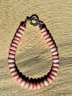 Indulge in the sweet elegance of our Light Pink Coral Rondels Bracelet, reminiscent of a delightful candy necklace. This charming piece features perfectly matched light pink coral rondels, strung together to create a whimsical and playful accessory. The soft hue of the coral stones exudes feminine charm, adding a touch of sweetness to any ensemble. With its playful design and delicate appearance, this bracelet is perfect for adding a pop of color and fun to your look. Whether worn alone as a dainty accent or stacked with other bracelets for a layered effect, this piece is sure to bring joy and style to your outfit. Embrace the playful allure of our Light Pink Coral Rondels Bracelet and indulge in its delightful charm.