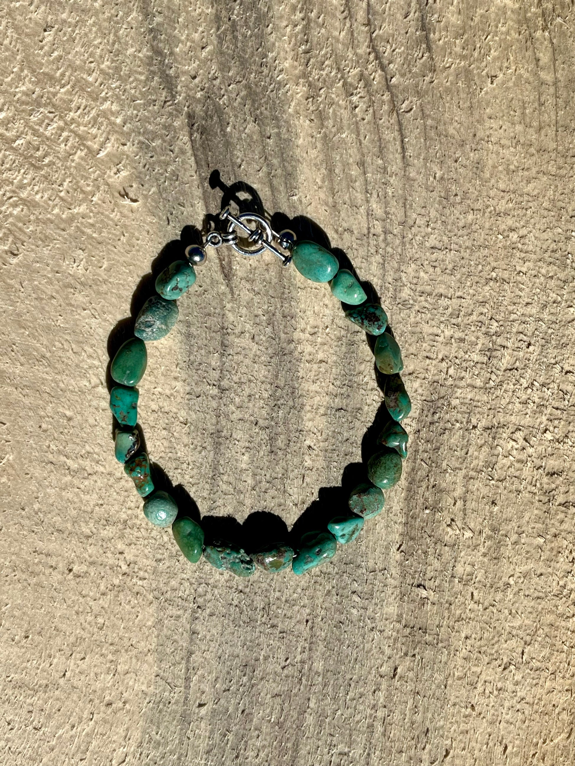 Introducing a bracelet adorned with the raw beauty of Natural Turquoise baby nuggets – a harmonious blend of daintiness and chunky charm. The petite yet distinctively textured nuggets create a bracelet that is both delicate and substantial, offering a natural feel that's impossible to ignore. This versatile piece serves as a delightful addition to your layered accessories or a standout gem when worn alone. The innate beauty of the Natural Turquoise shines through, making each nugget a unique expression of the earth's artistry. Adorn your wrist with this bracelet, embracing its dainty allure and chunky, natural appeal that effortlessly complements any style, adding a touch of authenticity and elegance to your ensemble.